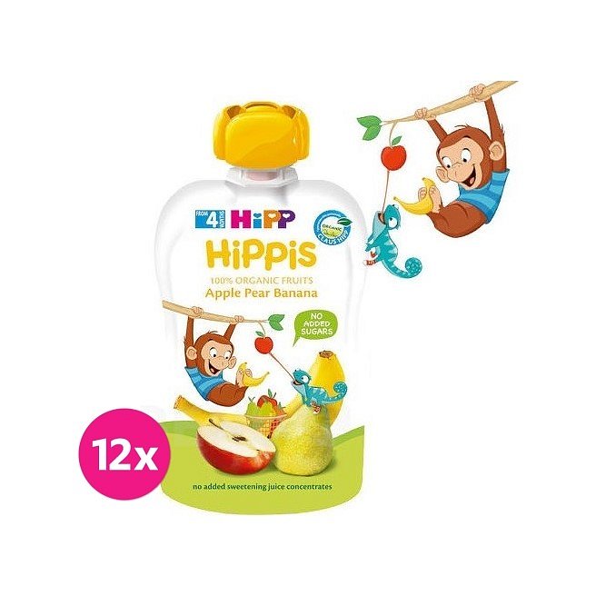 HiPP BIO 100% ovoce Jablko – Hruška – Banán 100 g, od ukončeného 4. měsíce Víte, jak plníme naše kapsičky ovocem? Přeci za pomoci HiPPis zvířátek. Opička Žofka podává ovoce z těch nejvyšších větví chameleonovi Pájovi, který ho svým dlouhatánským jazykem opatrně ukládá do košíku. HiPP ovocné kapsičky jsou bez přidaného cukru a nejsou doslazovány ani ovocnými koncentráty. Jsou vyrobeny z ovoce té nejvyšší BIO kvality. Vlastnosti: 100% ovoce Bez přídavku cukrů (obsahuje přirozeně se vyskytující cukry) Nedoslazováno ovocnými koncentráty Přirozeně bez lepku Jemné pyré BIO Podle věku dítěte je možné kapsičku podávat třeba na lžičce nebo talířku. Kapsička se skladuje v suchu a temnu při teplotě do 24 °C. Složení: ovoce* 100 % (jablka* 40 %, hrušky* 40 %, banány* 20 %) *z ekologického zemědělství O značce HiPP >>