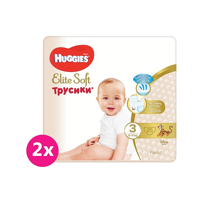 Prémiové jednorázové plenkové kalhotky Huggies Elite Soft jsou nejjemnější a nejměkčí pleny pod značkou Huggies. Měkké polštářky, které přicházejí do bezprostředního kontaktu s dětskou pokožkou vytvářejí jemnou bariéru mezi pokožkou a tekutou stolicí. Unikátní vrstva Soft Absorb vstřebá tekutinu ve chvilce a i díky tomu zůstane dětský zadeček v suchu. Před protečením v oblasti zad chrání speciální zádová kapsa. Navíc materiál, z kterého jsou pleny vyrobeny, umožňuje pokožce dýchat. Snadno se navlékají a sundávají, takže přebalování s nimi je hračka. Pro děti vážící 6–11 kg.