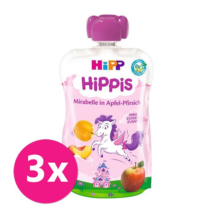 3x HIPP BIO Hippis Jablko, Broskev, Mirabelka (12 m+) 100 g