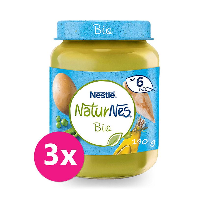NESTLÉ NaturNes BIO dětský příkrm hrášek s bramborami a kuřecím masem je maso-zeleninový příkrm od ukončeného 6. měsíce. Lahodný příkrm, který pomůže vašemu malému broučkovi lépe se seznámit s kombinací chutí hrášku, brambor a kuřecího masa. Veškeré suroviny použité k výrobě tohoto příkrmu pocházejí z ekologického zemědělství. Hladká konzistence byla přizpůsobena potřebám a dovednostem malých dětí. Kvalitní suroviny z ekologického zemědělství speciálně vypěstované pro dětské příkrmy Bez konzervačních látek a barviv* Bez aromat a zahušťovadel Bez lepku Bez přidané soli * v souladu s požadavky legislativy Složení: Složení: pitná voda, hrášek* 20 %, brambory* 11 %, mrkev* 10 %, kuřecí maso* 8 %, pastinák* 6 %, cibule* 5 %, rajčatové pyré* 2,8 %, rýžová mouka* 2 %, extra panenský olivový olej* 1,3 %. *z ekologického zemědělství