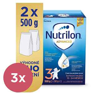 Objevte naši nejnovější inovaci mlék Nutrilon 3 Advanced, speciálně vyvinutou pro podporu imunitního systému A normálního VÝVOJE*. Naše jedinečné složení obsahuje naši patentovanou směs oligosacharidů GOS/FOS a LCP**, oligosacharid mateřského mléka 3'GL (3'galaktozyllaktóza), který přináší náš unikátní proces výroby, vitamíny C a D, které přispívají k podpoře imunity* a také vápník* . Naše inovativní složení je BEZ PALMOVÉHO OLEJE a nyní také v cenově výhodném a 100% recyklovatelném papírovém balení duo balení! Počátek života vašeho děťátka je výjimečné období. Je krásné, občas nevyzpytatelné, ale především hektické. Musíte se starat o spoustu věcí, a proto je důležité mít se na koho obrátit. Jsme tady pro vás. NUTRILON 3 ADVANCED batolecí mléko od ukončeného 12. měsíce obsahuje: HMO 3´GL a směs oligosacharidů GOS/FOS Živiny na podporu imunitního systému (Vitamíny C a D) vitaminy C a D* přispívají k normální funkci imunitního systému Omega-3 (DHA) Vápník Vápník* je potřebný pro normální růst a vývoj kostí u dětí BEZ PALMOVÉHO OLEJE **LCP = polynenasycené mastné kyseliny s dlouhým řetězcem 100% recyklovatelná krabice obalu DALŠÍ KROK NA PODPORU IMUNITY* Začátek života vašeho děťátka je výjimečné období a my věříme, že každá zkušenost v jejich životě jim pomáhá budovat odolnost. Představujeme vám naši nejnovější inovaci, Nutrilon Advanced, speciálně vyvinutý pro podporu imunitního systému a normálního vývoje vašeho dítěte*. Naše inovativní složení je BEZ PALMOVÉHO OLEJE a nyní také v cenově výhodném a 100% recyklovatelném papírovém obalu duo balení! Proč si vybrat batolecí mléko Nutrilon? Mezi hlavní výhody mléček Nutrilon patří: HMO 3´GL: Oligosacharid mateřského mléka 3´galaktozyllaktóza, kterou přináší náš unikátní proces PREBIOTIKÁ GOS/FOS: napodobují funkci oligosacharidů v mateřském mléce ŽIVINY PRO PODPORU IMUNITNÍHO SYSTÉMU: Vitamíny C, D* přispívají k normální funkci imunitního systému VÁPNÍK: Vápník* potřebný pro normální růst a vývoj kostí u dětí BEZ PALMOVÉHO OLEJE **LCP = polynenasycené mastné kyseliny s dlouhým řetězcem 100% recyklovatelná krabice obalu Vitamíny C a D přispívající k normální funkci imunitního systému. Vápník, který je potřebný pro normální růst a vývoj kostí u dětí. Naše jedinečné složení obsahuje patentovanou směs oligosacharidů GOS/FOS a LCP**, oligosacharid mateřského mléka 3'GL (3'galaktozyllaktóza), který přináší náš jedinečný výrobní proces, vitamíny C a D na podporu imunity* a vápník potřebný pro normální růst a vývoj kostí*. Naše inovativní složení je BEZ PALMOVÉHO OLEJE a nyní také v cenově výhodném a 100% recyklovatelném papírovém obalu duo balení! *Vitamíny C a D přispívají k normální funkci imunitního systému, vápník je potřebný pro normální růst a vývoj kostí u dětí. **LCP = polynenasycené mastné kyseliny s dlouhým řetězcem Expert na výživu v raném věku Nutricia má více než 120 let zkušeností s výživou dětí. S naším týmem pět set vědců a odborníků jsme již 50 let nadšenými průkopníky ve výzkumu vlivu výživy na vývoj batolat a jejich imunitní systém. Proč důvěřovat značce Nutrilon? Batolecí mléka Nutrilon jsou vyvinuta na základě výzkumu výživy dětí. Již více než 50 let se náš tým pět set vědců a odborníků věnuje výzkumu vlivu výživy na vývoj batolat a jejich imunitní systém. Příběh Nutrilonu začíná v přírodě Mléka Nutrilon vyrábíme z vysoce kvalitního mléka od kraviček z kontrolovaných chovů. Díky inovativním technologiím uchováváme to nejlepší z přírody. Naše mléko obsahuje pouze pečlivě vybrané ingredience, přizpůsobené výživovým potřebám dětí. Základem mléka Nutrilon je naše jedinečná receptura, kterou neustále vylepšujeme v nejmodernějších vývojových centrech po celém světě. Aby miminko dostávalo to nejlepší od samého začátku, neustále vylepšujeme naši recepturu. Snažíme se, aby naše produkty byly nejvyšší kvality, přátelské k přírodě a hlavně jednoduché na použití. Složení: 1 364 / 5 000 Výsledky překladu Výsledky překladu Laktóza (z mléka/z mléka), sušené odtučněné mléko/odtučněné mléko, maltodextrin/maltodextrin, galaktooligosacharidy (z mléka/z mléka) 8,6 %, demineralizovaná syrovátka/syrovátka (z mléka/z mléka) bílkoviny (z mléka/z mléka), rostlinné/rostlinné oleje (řepkový/řepkový, slunečnicový/slunečnicový, slunečnicový s vysokým obsahem kyseliny olejové/slunečnicový s vysokým obsahem kyseliny olejové, kokosový), fosforečnan vápenatý, fruktooli , rybí olej, citronan/citran draselný, hydrogenfosforečnan hořečnatý/hořečnatý, citronan/citran sodný, chlorid draselný, kyselina L-askorbová, emulgátor (sójový lecitin/lecitin), chlorid cholinu/cholin chlorid, /hořečnatý, L-askorban sodný, síran zinočnatý/zinečnatý, antioxidant (askorbylpalmitát), D-pantothenát/pantotenát vápenatý, DL-α-tokoferyl acetát, mléčná aroma/mléčné aroma, nikotinamid/nikotinami lavin, retinylpalmitát, cholekalciferol, pyridoxin/pyridoxin hydrochlorid, thiamin/thiamin hydrochlorid, jodid draselný, kyselina pteroylmonoglutamová/pteroylmonoglutamová (kyselina listová), fytomenadion/fytomenadion, D. Složení se vztahuje k sušenému stavu potraviny.