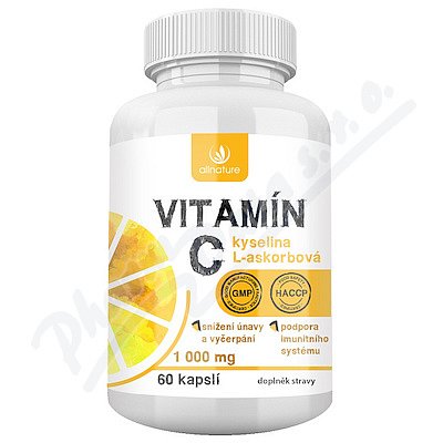 Allnature Vitamín C je doplněk stravy s obsahem vitaminu C. Vitamín C je antioxidant a přispívá k ochraně buněk před oxidačním stresem. Přispívá k normální funkci imunitního systému a také ke snížení míry únavy a vyčerpání. Vitamín C je také známý jako kyselina L-askorbová. Balení obsahuje 60 kapslí.