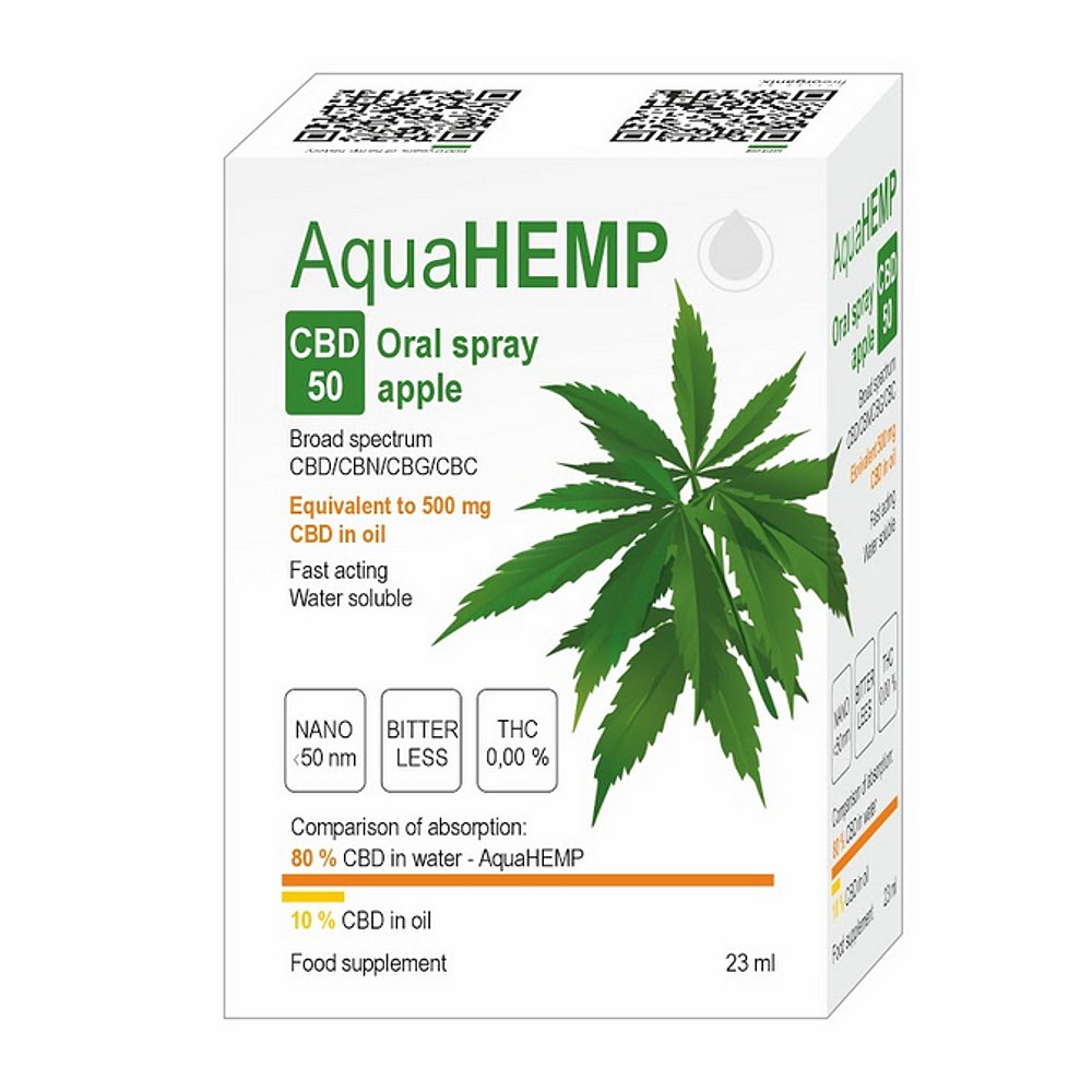 AQUAHEMP CBD 50 Konopný ústní sprej široké spektrum jablko 23 ml