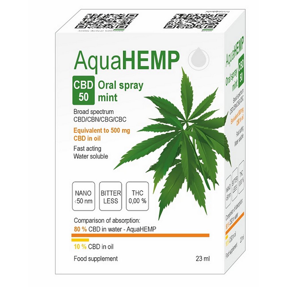 AQUAHEMP CBD 50 Konopný ústní sprej široké spektrum máta 23 ml