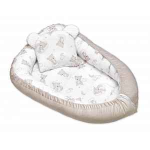 Baby Nellys Oboustranné hnízdečko s polštářkem,50x80 cm, Malý medvídek, bílá, béžová