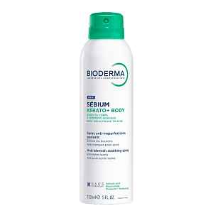 BIODERMA Sébium Kerato+ body – tělový sprej 3v1 na pupínky, začervenání a stopy po akné. Snadná aplikace 360°, lehká textura a vysoká snášenlivost.