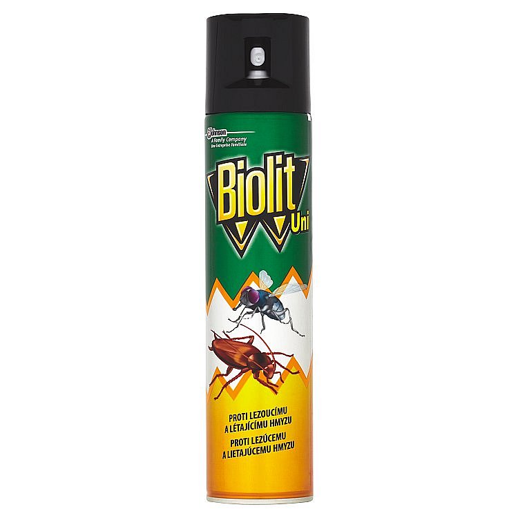 Popis Vysoce účinný univerzální sprej proti mouchám, komárům, švábům, mravencům a jinému létajícímu a lezoucímu hmyzu v domácnostech. Používejte biocidní přípravky bezpečně. Před použitím si vždy přečtěte údaje na obalu a připojené informace o přípravku. Skladování a použití Způsob skladováníTypMax teplota °CTrvanlivé50Příprava a použitíNávod pro použití: Před použitím protřepte. Otočte dýzu nádobky směrem od obličeje a stiskněte aplikátor. Nádobku držte v co nejvíce vzpřímené poloze. Biolit® nemusíte stříkat přímo na létající hmyz např. mouchy, protože hmyz usmrtí přípravek rozptýlený ve vzduchu. Zavřete dveře a okna. V průměrně velké místnosti (30 m³) stříkejte přípravek pomalým širokým pohybem 8-10 sekund. Postupujte od středu místnosti zpět ke dveřím. Nasměřujte aerosol do všech oblastí v místnosti. Držte nádobku ve vzdálenosti 1 m od interiérových stěn, tkanin a nábytku. Nezdržujte se v místnosti s aplikovaným přípravkem. Místnost nechejte uzavřenou 15 minut. Před opětovným vstupem ji důkladně vyvětrejte. Když chcete hmyz rychle zlikvidovat, nastříkejte přípravek přímo např. na poletující vosy, sršně, zachovejte zase vzdálenost 1 m od interiérových stěn, tkanin a nábytku. Pro lezoucí hmyz: Když chcete odstranit lezoucí hmyz, např. šváby, nastříkejte přípravek přímo na hmyz. Nastříkejte přípravek na skrytá místa, např. na podlahové lišty a desky, vlhká místa, mezery kolem dřezů, odpadů a potrubí, za poličkami, skříňkami a dalšími ukládacími prostory. Snažte se zasáhnout co nejvíce hmyzu. Podle potřeby opakujte.SkladováníMinimální doba skladovatelnosti: 4 roky od data výroby (MAN) uvedeného na obale. Podrobná data CLP Regulationplamen - Nebezpečí životní prostředí - NebezpečíBezpečnostní varováníBiolit® UNI proti lezoucímu a létajícímu hmyzu - insekticid ve spreji. Nebezpečí Účinné látky: 0,125 g 1R-trans-fenothrinu a 0,1 g prallethrinu ve 100 g přípravku. Extrémně hořlavý aerosol. Nádoba je pod tlakem: při zahřívání se může roztrhnout. Toxický pro vodní organismy, s dlouhodobými účinky. Je-li nutná lékařská pomoc, mějte po ruce obal nebo štítek výrobku. Uchovávejte mimo dosah dětí. PŘI ZASAŽENÍ OČÍ: Několik minut opatrně vyplachujte vodou. Vyjměte kontaktní čočky, jsou-li nasazeny a pokud je lze vyjmout snadno. Pokračujte ve vyplachování. Chraňte před slunečním zářením. Nevystavujte teplotě přesahující 50 °C. Chraňte před teplem, horkými povrchy, jiskrami, otevřeným ohněm a jinými zdroji zapálení. Zákaz kouření. Nestříkejte do otevřeného ohně nebo jiných zdrojů zapálení. Nepropichujte nebo nespalujte ani po použití. Nevdechujte aerosoly. Po manipulaci důkladně omyjte ruce. Používejte dle návodu. Nestříkejte na osoby a zvířata. Před aplikací odneste nebo zakryjte potraviny, zařízení k přípravě potravin a nádobí. Před použitím odstraňte nebo zakryjte terária, akvária a zvířecí klece. Při postřiku mějte vypnutý vzduchový filtr u akvária. Nestříkejte na tapety. Aplikujte minimálně 1 m od všech povrchů a stěn. Skladujte odděleně od potravin, nápojů a krmiv pro zvířata. Používejte pouze v dobře větraných prostorách. Jazyk produktuHlavní jazyk návodu - čeština Instalační jazyk - češtinaJazyky na baleníČeštinaSlovenštinaRozklad popisuFunkční jméno - Uni Varianta - Proti lezoucímu a létajícímu hmyzu