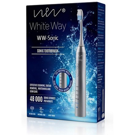 Kartáček WW-Sonic díky sonické technologii zajistí optimální čištění povrchu zubů a mezizubních prostor, které jsou nedostupné pro tradiční kartáčky. Sonický zubní kartáček WW-Sonicoptimálně vyčistí povrch zubů a mezizubní prostory, které jsou pro běžné zubní kartáčky nedostupné. Štětinky kartáčku precizně a efektivně odstraňují zubní plak, zubní kámen, zabarvení, vybělují zuby a masírují dásně a dodává tak Vašim zubům zdravý a bílý úsměv.