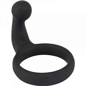 Černý, silikonový kroužek na penis nebo za varlata s výběžkem pro stimulaci hráze. Ideální hračka pro masturbaci i sex s partnerkou..