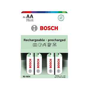 Bosch Rechargeable NiMh AA HR6 2100 mAh Precharged baterie poskytují až 1000 dobíjecích cyklů. Nízké samovybíjení. K použití pro všechny nabíječky.