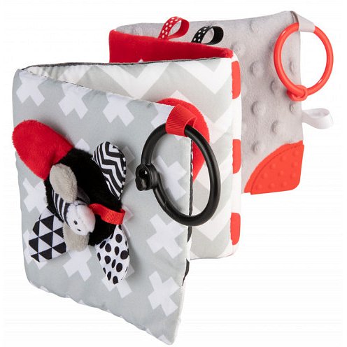 Canpol babies Kontrastní edukativní knížka SENSORY Kontrastní edukativní knížka z kolekce SENSORY je určena již pro nejmenší děti. Hračku je možné jednoduše upevnit díky klipům na požadované místo - kočárek, postýlku nebo autosedačku. Praktický doplněk disponuje šustícími a pískacími elementy, zrcátkem, chrastítkem, kousátkem a odnímatelnými prvky.