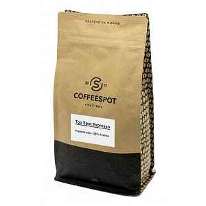 Coffeespot Top Spot Espresso je jemná směs čtyř prvotřídních arabik s čokoládovými a kakaovými tóny, nízkou kyselostí a středně intenzivním pražením.