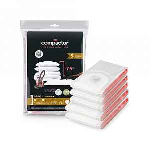 Vakuové pytle Compactor Bag Aspispace zredukují objem až o 80 %, šetří místo při uskladnění textilu a chrání před prachem, vlhkostí a škůdci. Sada obsahuje 3 pytle velikosti M (70 l) a 2 pytle velikosti L (120 l).