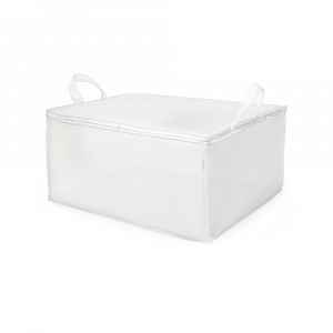 Textilní úložný box Compactor Milky 70 × 50 × 30 cm chrání oděvy a přikrývky před prachem, má zapínání na zip a je vyroben z odolné netkané textilie.