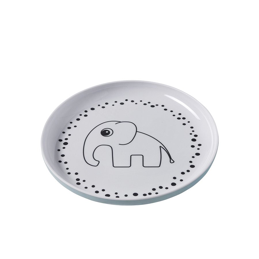 Šťastné tečky tanší kolem veselého slona Elpheeho, který se skrývá na na dně tohoto talířku. Čeká až sníš své jidlo aby mohl přijít a hrát si. - Materiál: 100% melamin (žádný formaldehyd) - Čištění: lze mýt v myčce, nepoužívejte v mikrovlnné troubě - Velikost: 20,5 cm