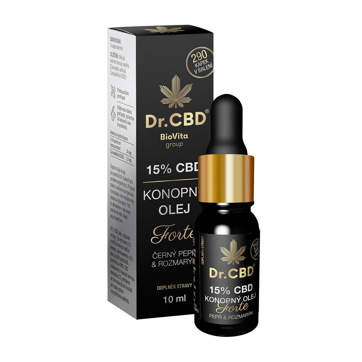Dr.CBD 15% konopný olej Forte černý pepř a rozmarýn 10 ml
