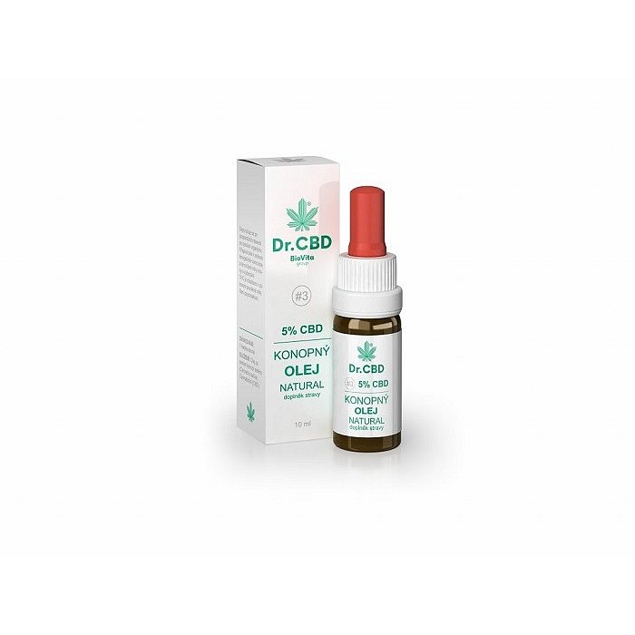 Dr.CBD 5% CBD konopný olej je doplněk stravy s obsahem CBD, není psychoaktivní a nezpůsobuje změnu vědomí. Olej podporuje přirozenou obranyschopnost (imunitní systém) a přispívá k normální činnosti svalů a kloubů. Olej obsahuje účinné složky kanabinoidy CBD, CBA, CBG, CBC, CBN, optimální poměr Omega-3 a Omega-6 esenciálních mastných kyselin, vitamíny, minerály, terpeny, flavonoidy a další tělu prospěšné látky. Naopak v něm nenajdete parabeny, umělá barviva, herbicidy, pesticidy, těžké kovy, konzervanty, GMO a jiné znečištění. Balení obsahuje 10 ml.