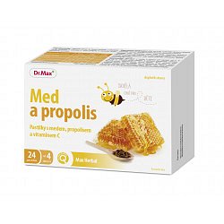 Pastilky s obsahem medu, propolisu a vitaminu C, který přispívá k normální funkci imunitního systému. Pastilky s vynikající chutí. Dávkování: Děti od 3 let užívají 2 pastilky denně a dospělí 4 pastilky denně. Pastilku nechte pomalu rozpustit v ústech. Složení: Extrakt z propolisu (1,5-2,5:1) 10 mg, med 28 mg, vitamin C 20 mg v jedné pastilce. Cukr, glukózový sirup, včelí med, regulátor kyselosti (kyselina citronová), vitamin C (L-askorbová kyselina), propolisový extrakt, přírodní citronový olej nebo přírodní citronové aroma, rozpouštědlo (voda). Upozornění: Nepřekračujte doporučenou denní dávku. Není určeno jako náhrada pestré stravy. Dbejte na vyváženou a pestrou stravu a zdravý životní styl. Ukládejte mimo dosah dětí. Není určeno dětem do 3 let. Nevhodné pro osoby alergické na včelí produkty.