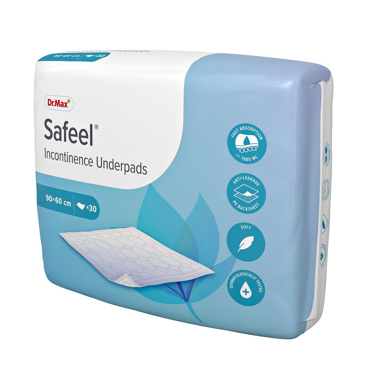 Dr.Max Safeel Incontinence Underpads jsou absorpční podložky s vysokou savostí k ochraně lůžka proti vlhkosti během výměny plen, při náhodném úniku moči nebo chirurgickém zákroku. Velikost 90 x 60 cm.