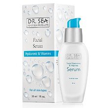 Facial Serum Hyaluronic Acid and Vitamins - Sérum pro zvýšení účinnosti krému - koncentrovaný kosmetický přípravek, který funguje na buněčné úrovni a dodává krémově užitečné složky hlouběji do pleti - kyselina hyaluronová je přírodní složkou pokožky a jedním z přírodních hydratačních prostředků - kosmetická kyselina hyaluronová: udržuje rovnováhu vody v pleti, pokrývá pleť tenkou vrstvou, která brání dehydrataci, zabraňuje podráždění pleti - kombinace kyseliny hyaluronové, minerálů z Mrtvého moře a vitamínů činí pokožku zářivou, hladkou a pevnou - vhodný pro všechny typy pleti a ženy starší 30 let Použití: Doporučuje se aplikovat sérum 2-3x týdně spolu s jakýmkoliv krémem Dr. Sea.