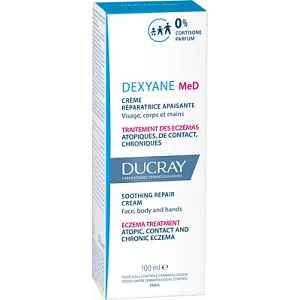 Ducray DEXYANE MeD Zklidňující reparační krém obnovuje poškozenou kožní bariéru a snižuje suchost pokožky. Zmírňuje její zarudnutí a podráždění, zklidňuje svědění a bolest.