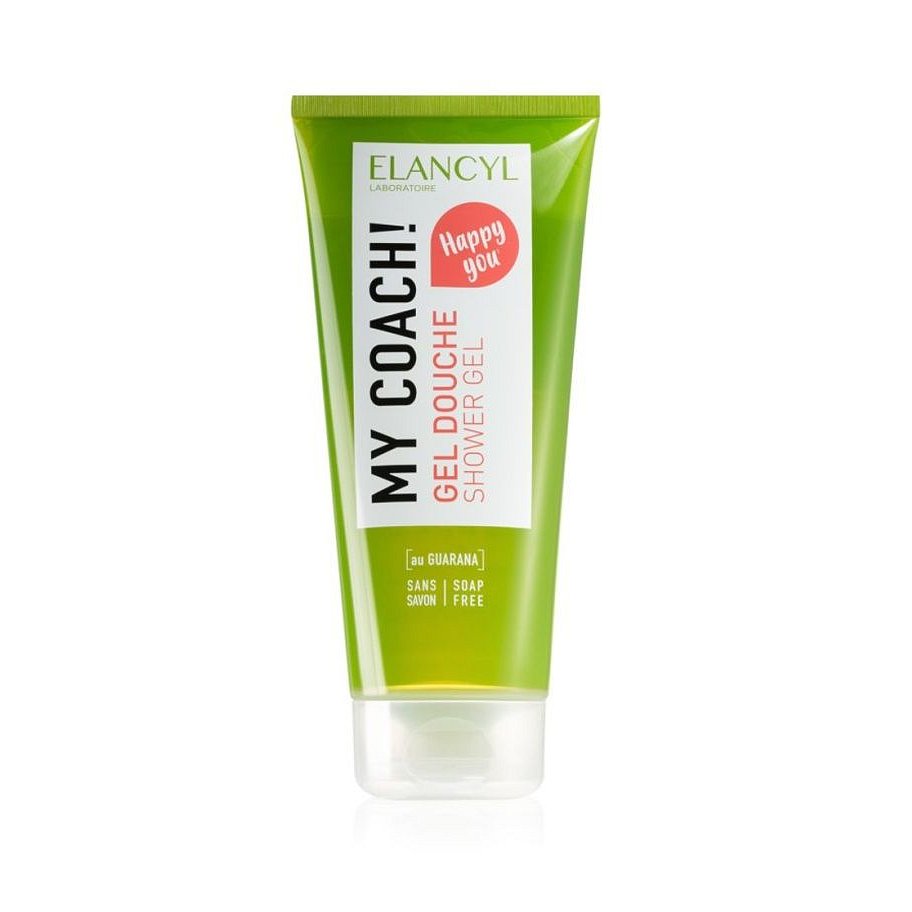 Elancyl MY COACH! sprchový gel s guaranou má výživnou texturou bez mýdlových přísad, která pokožku šetrně čistí a zároveň jí dodává potřebnou hydrataci, energii a svěžest.