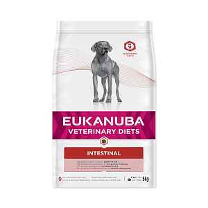 Suché veterinární krmivo Eukanuba VD Intestinal pro psy s problémy střevního traktu pomáhá udržovat jeho správné funkce, a to díky lehce stravitelným složkám, nízkému obsahu tuku a speciální směsi vlákniny.