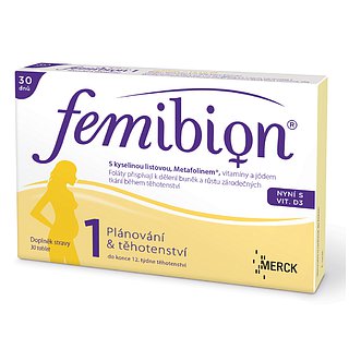 Obsahuje foláty (kyselina listová a Metafolin), vitamin D, jód a další složky. Femibion, který znáte, je NOVĚ obohacený o vitamin D. Proč? Protože dostatek vitaminu D je pro miminko taky důležitý. Vitamin D se v uplatňuje při dělení buněk, je důležitý pro zdraví kostí a zubů, ale hlavně pro imunitu. Komu je Femibion 1 určen? Dospělým ženám plánujícím těhotenství a těhotným až do konce 12. týdne těhotenství. Jak pomáhají jednotlivé složky Kyselina listová se významně podílí na dělení buněk, krvetvorbě a přispívá k růstu zárodečných tkání včetně placenty. Placenta pak zprostředkovává přenos živin k nenarozenému dítěti. Tělo kyselinu listovou přemění na jednodušší folát, což je její biologicky aktivní forma. Avšak organismus téměř 50% žen nedokáže z genetických příčin přeměnit dostatečné množství kyseliny listové na tyto aktivní formy. Důvodem je porucha enzymu MTHFR. Metafolin - obsažený ve Femibionu - je forma folátu, kterou může tělo využít přímo a to i u žen s MTHFR mutací.