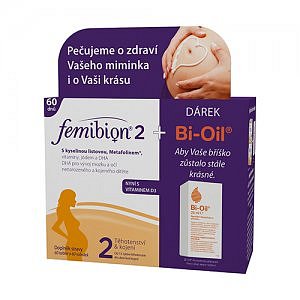 Femibion 2 je dopln?k stravy, který pomáhá dopl?ovat látky d?ležité v t?hotenství od 13. týdne až do porodu jako dopln?k k pestré a rozmanité strav?. Do 13. týdne je t?lo vašeho d??átka pln? zformováno a za?íná fáze neuv??iteln? rychlého r?stu. Proto doporu?ujeme zahájit užívání p?ípravku Femibion 2 T?hotenství. Femibion 2 vás zásobuje pe?liv? vybranými látkami, jako je folát (Metafolin® & kyselina listová) a omega-3 mastná kyselina DHA od 13. týdne t?hotenství až do porodu. Kyselina listová je vitamin ze skupiny vitamin? B. V t?le se p?em??uje (metabolizuje) na biologicky aktivní formy, tzv. foláty. V lidském t?le pak folát podporuje normální krvetvorbu, bun??né d?lení a v t?hotenství je d?ležitý také pro r?st zárode?ných tkání, v?etn? placenty. Placenta pak zprost?edkovává p?enos živin k nenarozenému miminku. Nicmén? ne všechny ženy dokáží pln? p?em?nit kyselinu listovou na aktivní folát. Metafolin® je speciální forma folátu vyvinutá a patentovaná spole?ností Merck, která již nemusí být metabolizována, ale je pro využití v t?le dostupná p?ímo. DHA je omega-3 mastná kyselina, která hraje zvláštní roli v t?hotenství a v období kojení. T?hotným a kojícím ženám se doporu?uje užívat navíc 200 mg DHA denn?, protože to podporuje normální vývoj mozku a o?í plodu i zraku kojených novorozenc?. Jód p?ispívá k normální tvorb? hormon? štítné žlázy a její správné funkci. Vitamin B1, Vitamin B2 a BIOTIN p?ispívají k udržení normálního energetického metabolismu a normální funkce nervového systému. Vitamin B6, B12, NIACIN a Kyselina pantothenová pomáhají snižovat pocit únavy a vy?erpání. Vitamin C podporuje normální funkci imunitního systému. Vitamin D3 p?ispívá k normální funkci imunitního systému a hraje roli p?i bun??ném d?lení. Má též velký vliv na udržení normálního stavu zub? a kostí, a to nejen v pr?b?hu t?hotenství. Vitamin E pomáhá chránit bu?ky p?ed oxida?ním stresem.