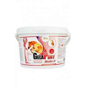 Nutriční doplněk k intenzivní regeneraci tkání kopytního systému koní.Gelapony Biotin H obsahuje kombinaci účinných látek pro optimální růst kopytní rohoviny a regeneraci celého kopytního systému. Obsahuje vysokou hladinu biotinu (40 mg v denní dávce), organickou síru, zinek a měď v organické vazbě, vitamíny a aminokyseliny potřebné pro správnou tvorbu kopytní rohoviny