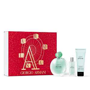 Tento vánoční set značky Armani obsahuje dámskou vůni Acqua di Gioia (100 ml),její cestovní verzi (15 ml)a tělové mléko (75 ml).