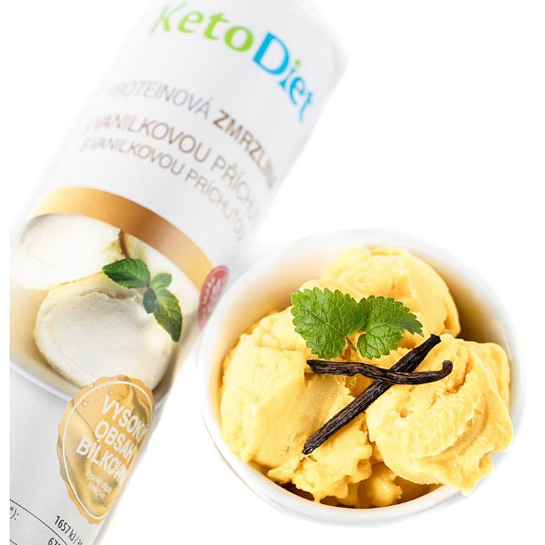 Proteinová zmrzlina s vanilkovou příchutí (20 porcí) Nová KetoDiet Zmrzlina s vanilkovou příchutí obsahuje přes 70% bílkovin a pouhé 2g cukru na porci! Příprava je rychlá a jednoduchá, směs smícháte s ingrediencemi a necháte zmrznout. Osvěžující low carb dobrotou zaženete chutě na sladké bez hromady kalorií a mile překvapíte celou rodinu nebo hosty na oslavě.