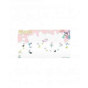 Bavlněná kabelka s ilustracemi motýlů obsahuje nejrůznější doplňky: telefon, rtěnku a peněženku na mince, bankovky a debetní kartu.