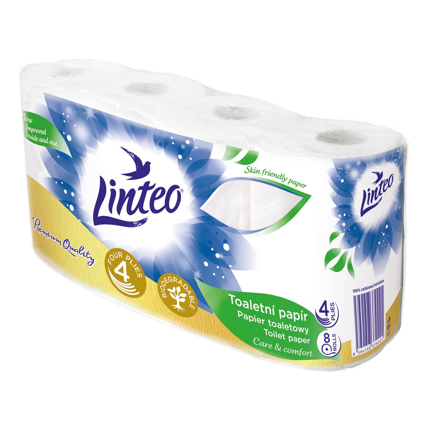 Jemný bílý čtyřvrstvý toaletní papír Linteo je vyrobený ze 100% celulózy. Poskytne vám jemnost a pevnost.