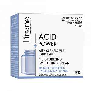 Lirene Acid Power Hydratační krém s hydrolátem z chrpy intenzivně hydratuje, zklidňuje a vyživuje pokožku a redukuje vrásky.