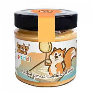 Lucky Alvin pro děti Arašídová pomazánka s bílou čokoládou 170 g Tak akorát sladký a neskutečně jemný arašídový krém, že si děti budou žádat přídavek. Máte ve svém okolí malé mlsouny a přemýšlíte, čím je potěšit? Lucky Alvin děti miluje a děti budou milovat jeho! Je totiž zdravou a nutričně bohatou alternativou ke známým čokoládovým pomazánkám. Bez zbytečné chemie, olejů a stabilizátorů.