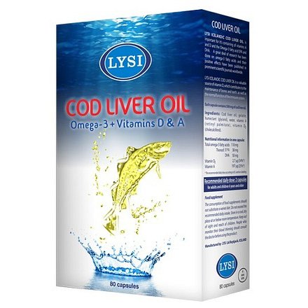 Cod Liver Oil Capsules / Olej z tresčích jater v 500mg kapslích, doplněk stravy společnosti LYSI, je vyroben z čistého oleje z tresčích jater a je dostupný v kapslích o hmotnosti 500 mg.