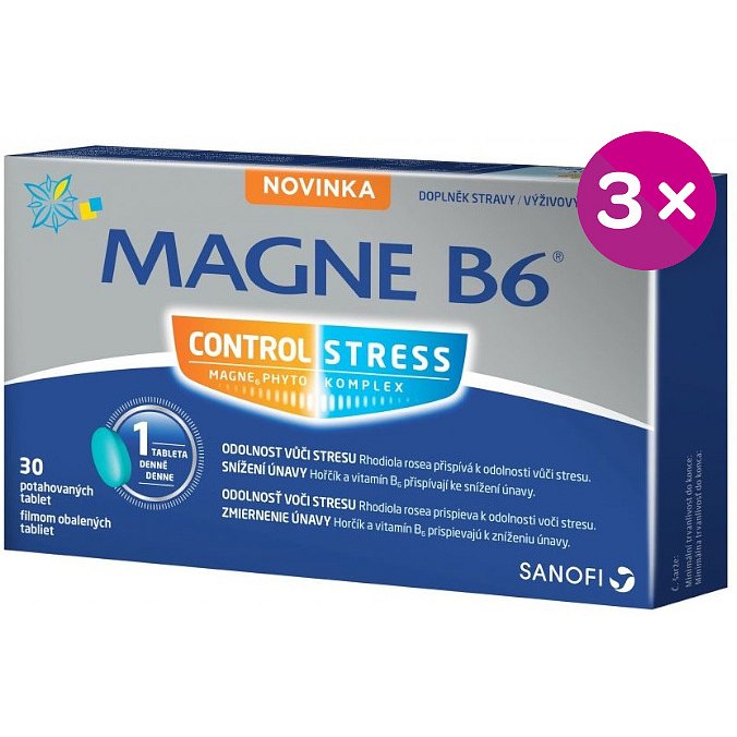 Magne B6® Control Stress Triopack 90 potahovaných tablet MAGNE B6R Control Stress je doplněk stravy pro zvládání negativních projevů stresu, jako je únava, vyčerpání nebo snížená koncentrace.