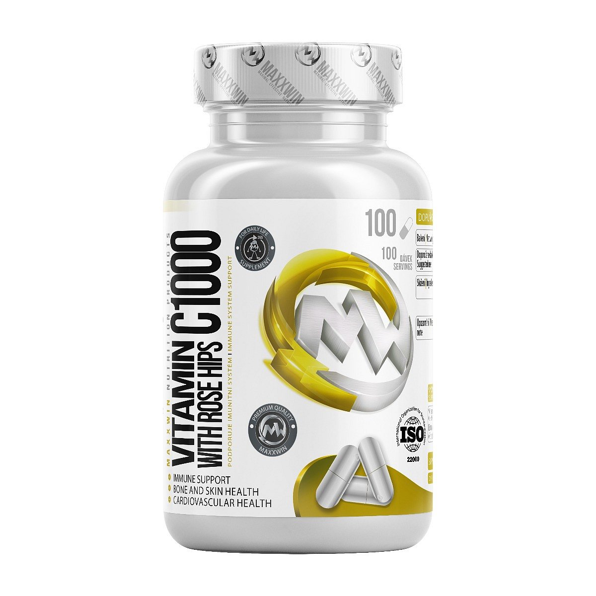 MAXXWIN VITAMIN C 1000 mg WITH ROSE HIPS obsahuje extrakt ze šípků a vysokou dávku vitaminu C, který podporuje obranyschopnost organizmu.