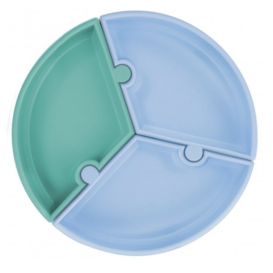 Talíř Puzzle silikonový s přísavkou - Green / Blue Stačí málo a oběd letí na zem. To se ale brzy změní: Tento silikonový talíř drží na stole díky silné přísavce.