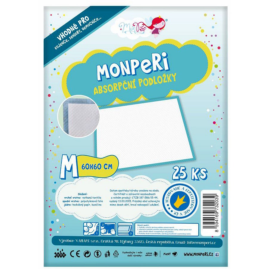 MonPeri Podložky M (60x60 cm) Jednorázové absorbční podložky s extra savým jádrem jsou ideálním pomocníkem při přebalování miminka, ale usnadní i péči o inkontinentní osoby.