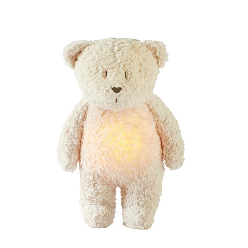 MOONIE Organic Humming Medvídek Světlo a Zvuk Sand Moonie usínáček v podobě roztomilého medvídka s nočním světlem a relaxačními zvuky pomáhá miminku uklidnit se a snáze usnout. Uklidňující zvuky připomínají dítěti prostředí v děloze maminky před jeho narozením. Usínáček nabízí pět přírodních relaxačních zvuků (lůno matky, vítr, lesní potok, mořské vlny, déšť) a ukolébavku, složenou speciálně pro novorozence.