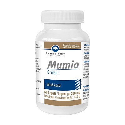 Doplněk stravy obsahuje mumio, také zvané jako horká pryskyřice. Vzniká působením organických složek a hornin, proto je bohaté na minerály. Vyhledávají ho osoby, které pociťují únavu a které potřebují doplnit minerály v organismu. Výrobek Mumio Shilajit je doplněk stravy ve formě kapslí (60 ks). Hmotnost jedné kapsle je 320 mg.
