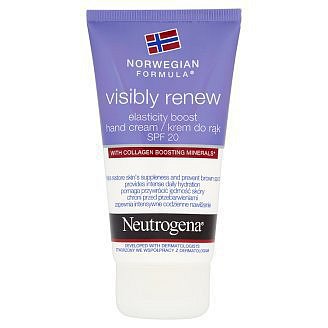 Neutrogena krém na ruce Visibly Renew 75ml Zajišťuje intenzivní hydrataci, pomáhá obnovit pružnost pokožky a zabránit výskytu hnědých skvrn.