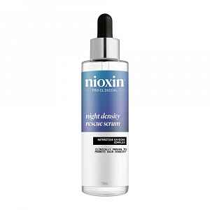 Noční péče pro řídnoucí vlasy NIOXIN Night Density Rescue Serum hydratuje a vyživuje pokožku hlavy. Složení s antioxidanty stimuluje růst nových vlasů.