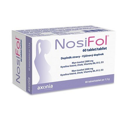 NosiFol je doplněk stravy určený pro podporu plodnosti žen i mužů. Obsahuje myo-inositol (2g v denní dávce) a kyselinu listovou (400 µg v denní dávce), zinek a vitamíny D3, B6 a B12.