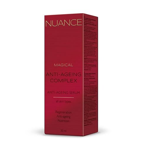 Nuance Magical Anti-Ageing Complex je multifunkční pleťové sérum, které poskytuje výživu, hydrataci a vše, co pleť potřebuje k pravidelné a efektivní regeneraci.