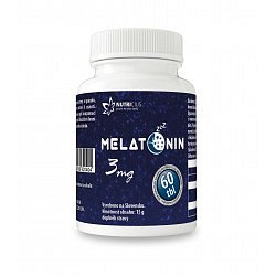 Melatonin přispívá ke zkrácení doby nutné pro usnutí (příznivého účinku se dosáhne při konzumaci 1 mg melatoninu před spaním). Melatonin také přispívá ke zmírnění subjektivního pocitu únavy v důsledku časového posunu (příznivého účinku se dosáhne při konzumaci alespoň 0,5 mg melatoninu krátce před spaním v první den cesty a několik následujících dní po příjezdu do cílového místa).. Dávkování: 1/2 tableta 1krát denně, na noc před spaním, dostatečně zapít tekutinou. Nepřekračujte denní dávkování. Složení: Obsah v jedné tabletě: úč. látky: Melatonin 3 mg, Pomocné látky: Mikrokrystalická celulóza (objemové činidlo), stearan hořečnatý rostlinného původu (protispékavá látka) Upozornění: Není určeno pro těhotné, kojící ženy a děti do 18 let. Nevhodné pro Diabetiky. Osoby s onemocněním Diabetes mellitus užívání konzultujte s lékařem. Ukládat mimo dosah malých dětí. Výrobek není určen jako náhrada pestré stravy. Dodržujte doporučené dávkování.