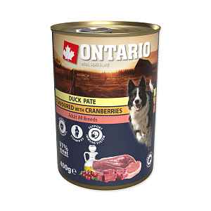 Kompletní krmivo Ontario pro dospělé psy všech plemen (od jednoho roku věku). Mleté kachní s příchutí brusinek.