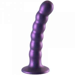 Efektní metalické silikonové dildo v růžové nebo fialové barvě s kulatou přísavkou má tvar kuliček, které parádně promasírují análek i vaginu.